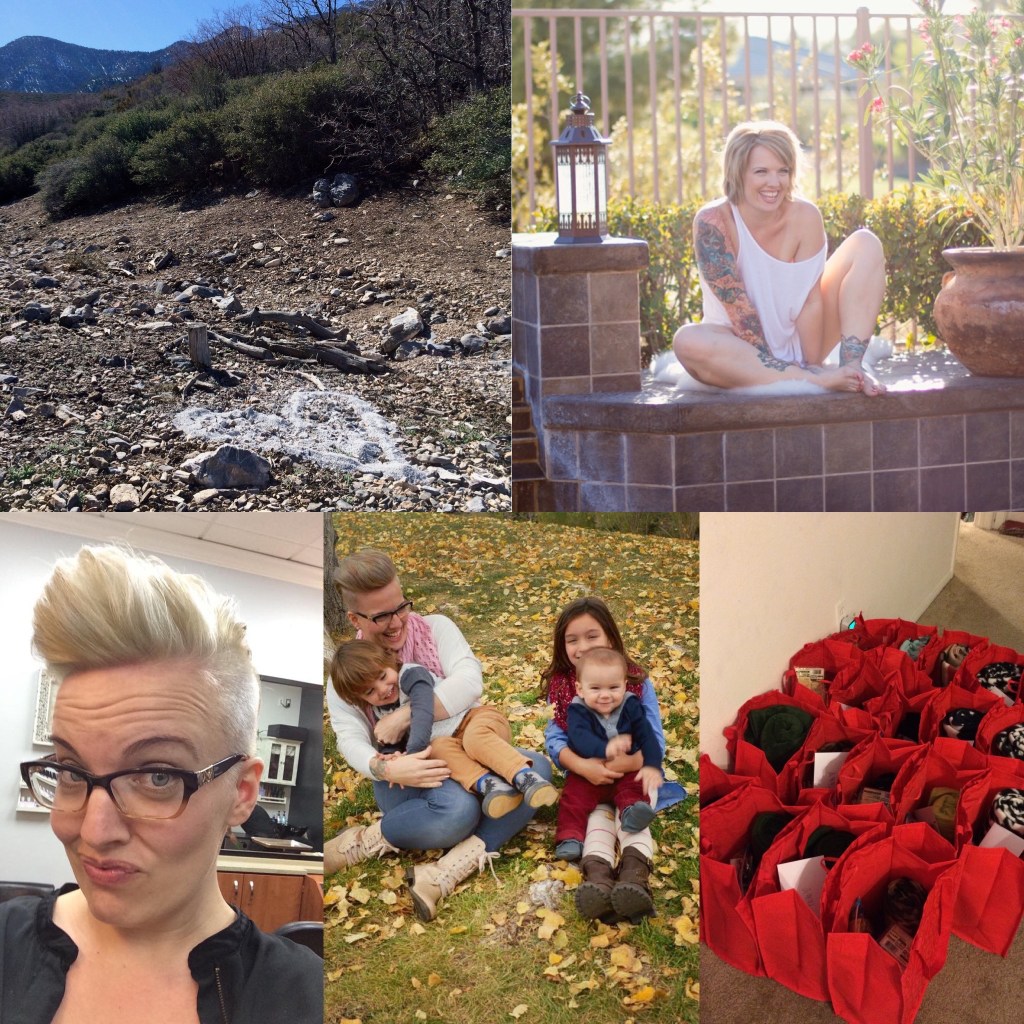 2014~ Sprinkled the remainder of Jeff’s ashes in the same place I sprinkled the first. Did a boudoir photo shoot, trying to empower myself. Started rockin’ the Mohawk (the hair I was always meant to have). Got to be part of another photo shoot, this time with 3 of my favorite littles. Handed out care packages to the homeless with the help of so many.